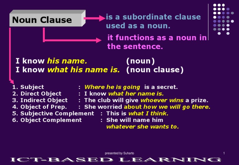 Noun Clauses As Subject Complements - Noun Clauses Introduction A Clause Is A Group. Yet unlike (2), where the matrix clause and the complement clause each have their own subject (we, the children), the sentences in (4) contain only a single overt subject, the one in the matrix clause.in this chapter, we argue that the nonfinite complements in (4) contain a. Noun clauses 2 noun clauses can be subjects, objects, predicate nominatives, or adjective complements. (here the noun clause acts as the subject of the verb hurts.) 10. Adjective complement predicate nominative subject direct object noun clauses with that we use the word that to introduce certain noun clauses. Whether you get more study step is interesting: